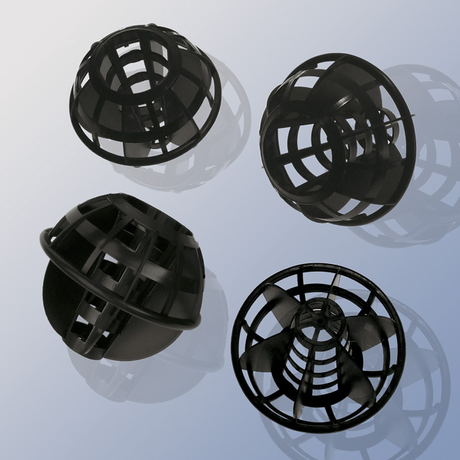 EUROFILL random fill media are made with polymeric materials. These products have many uses in the Energy and Environmental sectors. They are primarily produced through an injection molding process that allows forming three-dimensional objects. Technically, this is a family of transversal products that are made for productive technology even though they have many other uses.